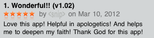 Notice: Reviews are opinions of their authors. We do not necessarily endorse any item(s) appearing in any review(s). We make no guarantees whatsoever regarding any item herein. Please also note that Apple, iPad, iPhone, iPod touch, and iTunes are trademarks of Apple Inc., registered in the U.S. and other countries. App Store is a service mark of Apple Inc. Android is a trademark of Google, Inc. Any robot images appearing on this page are reproduced from work (or are modifications based on work) created and shared by Google and used according to terms described in the Creative Commons 3.0 Attribution License.